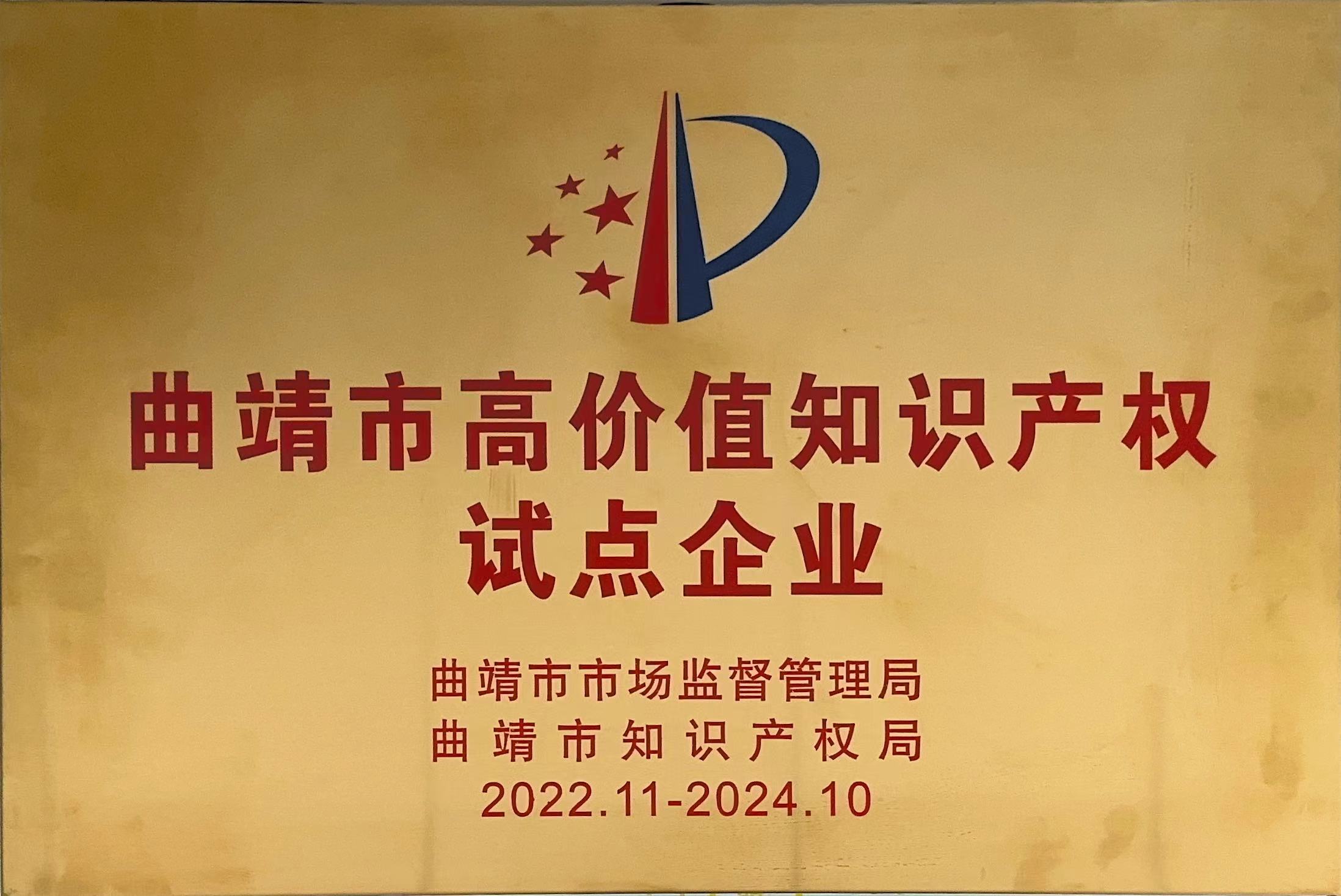 曲靖市高价值知识产权试点企业