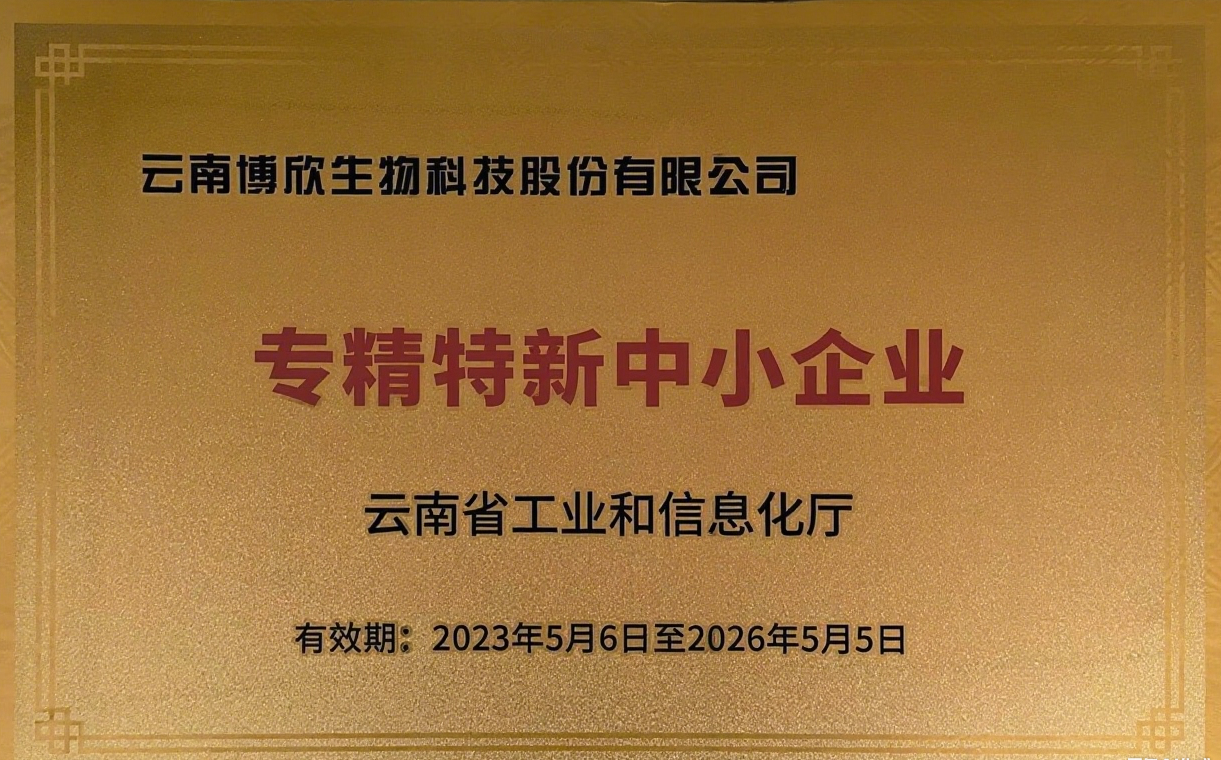 8月,获认定为“云南省知识产权优势企业”;成立全资子公司屏边博欣生物科技有限公司。